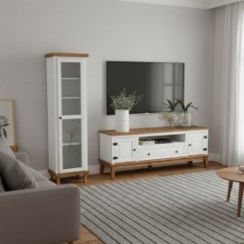 Kit Combo Sala de Estar Dinamarca Laca Branca — Rack 2 Portas 1 Gaveta 1,40m + Cristaleira 0,51m 1 Porta