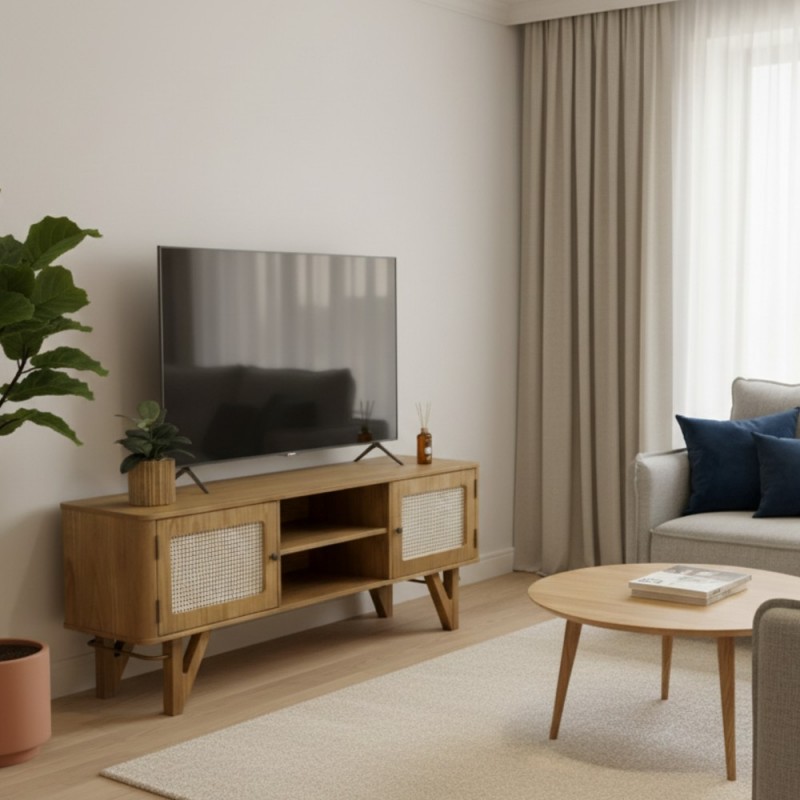 O Rack Nápoles é aquele móvel essencial que agrega muito ao espaço e valoriza o seu cantinho na sala. É uma peça encantadora com design moderno e funcional e é a mais nova tendência de decoração para o seu lar. Possui 2 portas com palhinha e 4 pés totalmente inovadores e arrojados, dando um upgrade no seu ambiente. Para completar, é muito resistente feito em madeira.