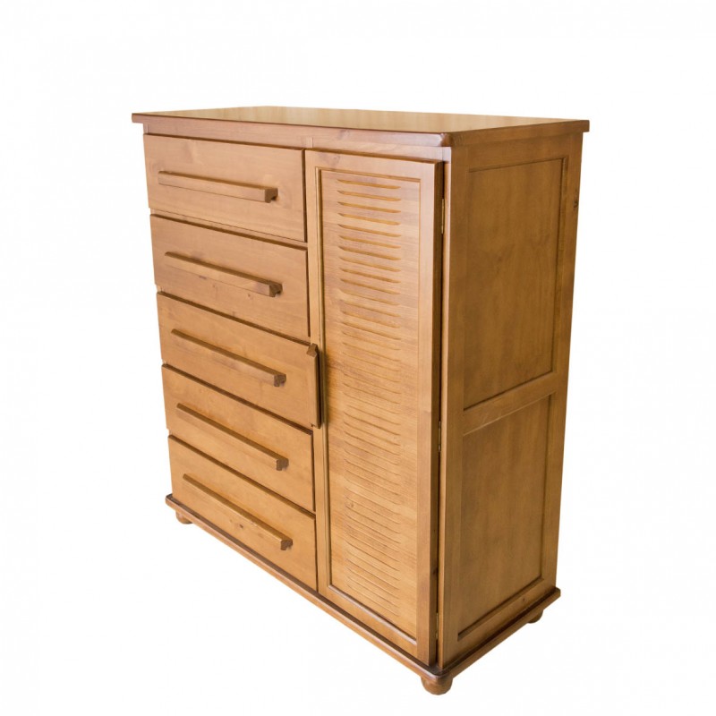 A Cômoda Sapateira Madrid possui 5 gavetas grandes com corrediças metálicas mais 1 porta, com puxadores de madeira, trazendo praticidade para o seu quarto, além de espaço para a organização de seu ambiente. É perfeita para juntar roupas e sapatos em um único móvel, sem deixar bagunça. Seu design é ripado em sua porta. Super resistente com estrutura toda em madeira Taeda de alta qualidade com acabamento em verniz, deixando o móvel sedoso e livre de arranhões. Sendo assim, a cômoda traz maior durabilidade dando um toque diferenciado ao seu ambiente.