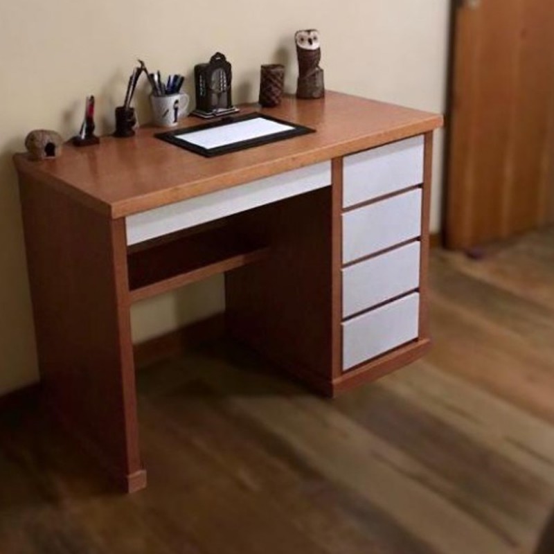 A Escrivaninha Apolo é campeã de vendas por ter um ótimo custo-benefício e ter muitas gavetas. Possui um amplo tampo para acomodar laptop, porta-caneta, livros, cadernos, além de colocar utensílios eletrônicos como telefone e som. Possui 4 gavetas que correm na madeira e 1 gaveta central com corrediças telescópicas com trava de segurança para colocar os objetos que você mais utiliza no seu dia a dia e uma pequena prateleira embaixo da mesa para colocar pertences pequenos. É uma mesa completa que ficará perfeita em sua residência!