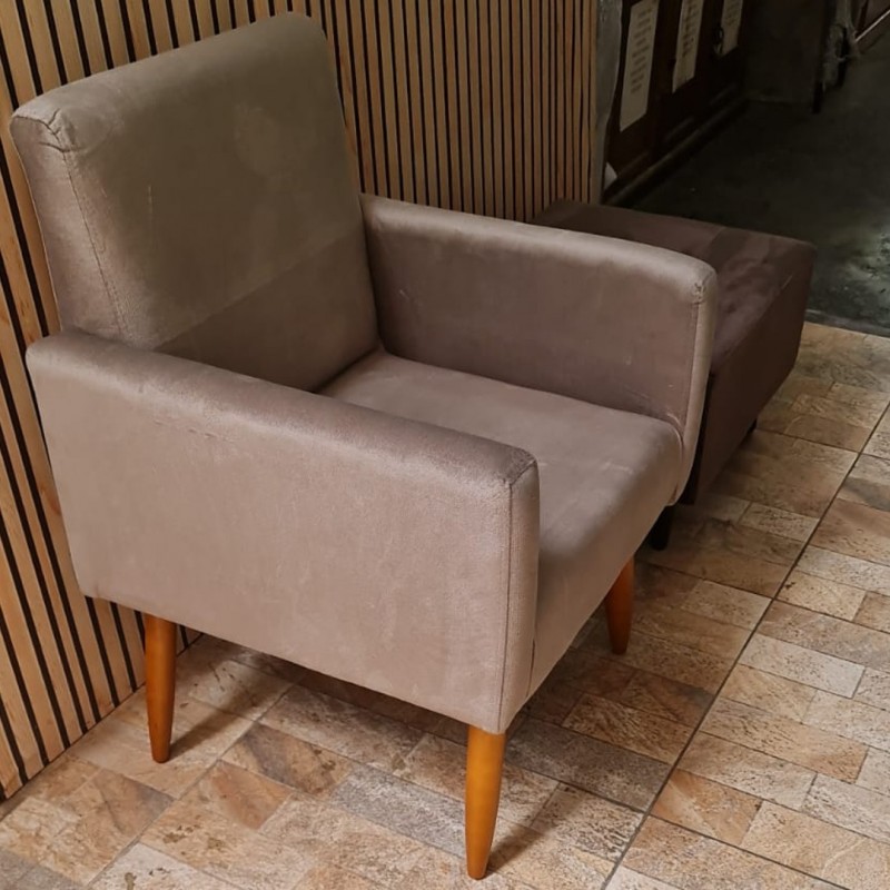 Produto com design super moderno que valoriza seu ambiente. Detalhe para os pés palito de madeira deixando a sua sala muito mais sofisticada e charmosa. Poltrona decorativa de um lugar suporta até 100 kg. Ideal para decoração de salas de tv, de estar e quartos. Poltrona com espuma D20 no assento e no encosto, D15 nos braços, encosto e assento fixos.