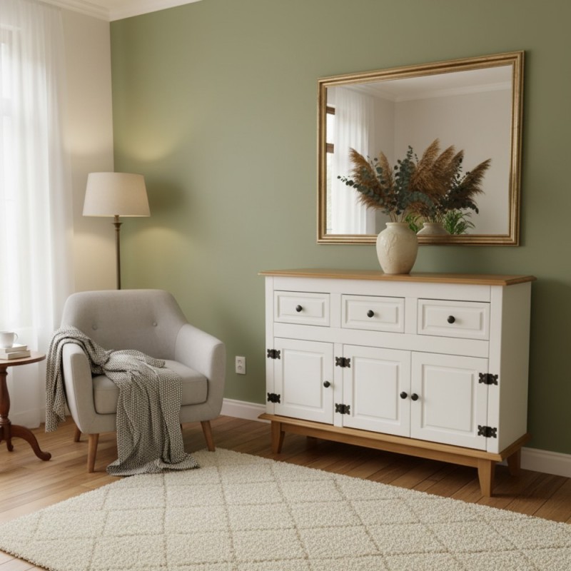 O Balcão de Madeira Dinamarca 3 Portas e 3 Gavetas é completamente cheio de charme e elegância.