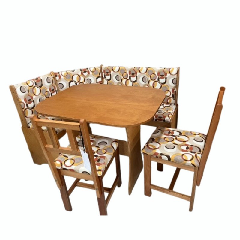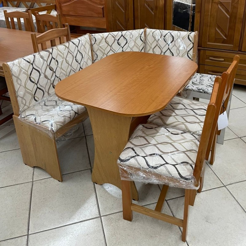 Conjunto de Canto Alemão Brenda 0,90x0,70m é super compacto, ideal para quem tem apartamento pequeno.  É produzido em madeira de Eucalipto, garantindo um controle de qualidade, dando ao nosso cliente uma satisfação de um mobiliário bonito e durável. Possui acabamento em verniz na cor imbuia fosco.