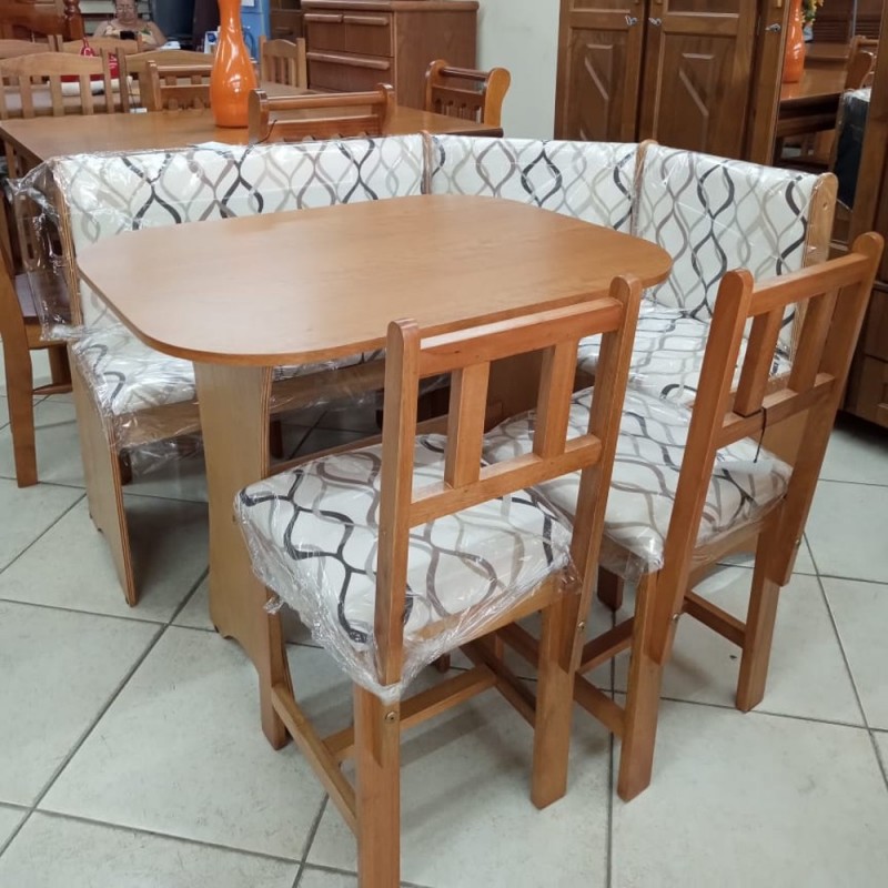 Esse Conjunto de Cantinho Alemão Brenda com detalhes torneados ficará lindo e o melhor com um ótimo custo-benefício. Junte a família toda e amigos para confraternizar momentos especiais em seu espaço gourmet, na copa, na cozinha ou na sua sala! Esse canto vai bem em salas bem pequenas. Sua Mesa mede apenas 0,90x0,70m. Móvel de alta qualidade,produzida em madeira.