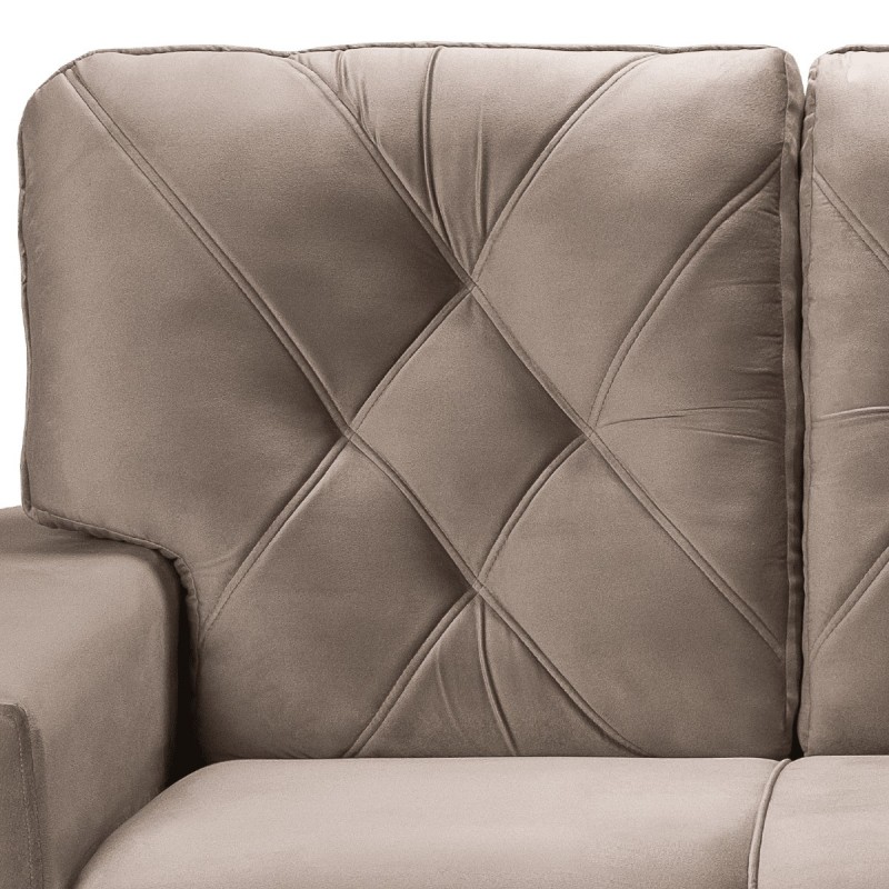 - Encosto com almofadas fixas desmontável, confeccionado com flocos de espuma com camada de fibra de silicone.