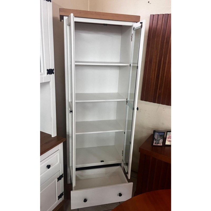Ver maior A Cristaleira de Madeira Maciça Branca Wolf conta com 2 portas e 1 gaveta possui prateleiras que vão ajudar na organização do seu lar, trazendo ainda mais charme para o ambiente. Uma peça com estilo rústico atemporal, que pode ser utilizada em qualquer estilo de decoração, agregando mais aconchego ao lar.