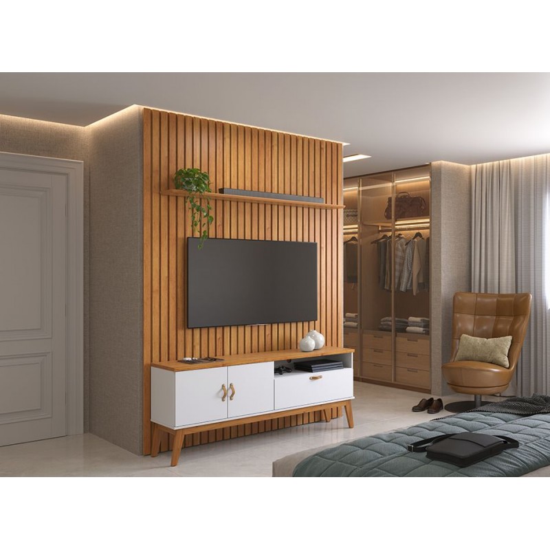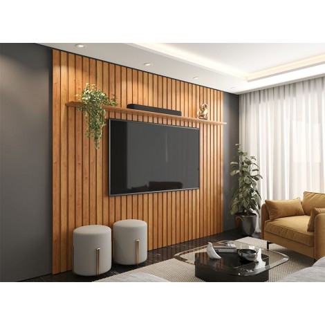 O Painel Ripado está super em alta e esse modelo com ripado verdadeiro promete revolucionar a decoração da sua sala. Moderno e Elegante, ele se encaixará perfeitamente na sua sala grande. Conta com uma prateleira para colocar vasos de planas e objetos decorativos. Suporta TV 75 polegadas. Aposte nesse modelo que será sucesso!