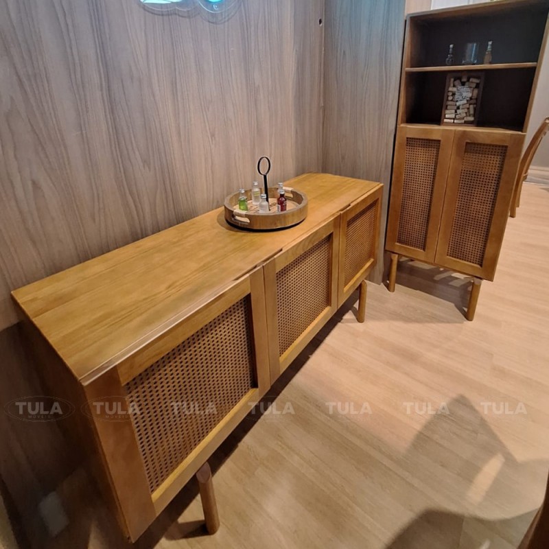 O Buffet de madeira Vancouver, super moderno se encaixa em todos os lugares facilitando ainda mais seus dias, contendo 3 portas com detalhes em palhinha tingida, gavetas internas e 2 prateleiras, proporcionando praticidade para melhor organiza-lo. Confeccionado com madeira de reflorestamento taeda com acabamento em verniz.