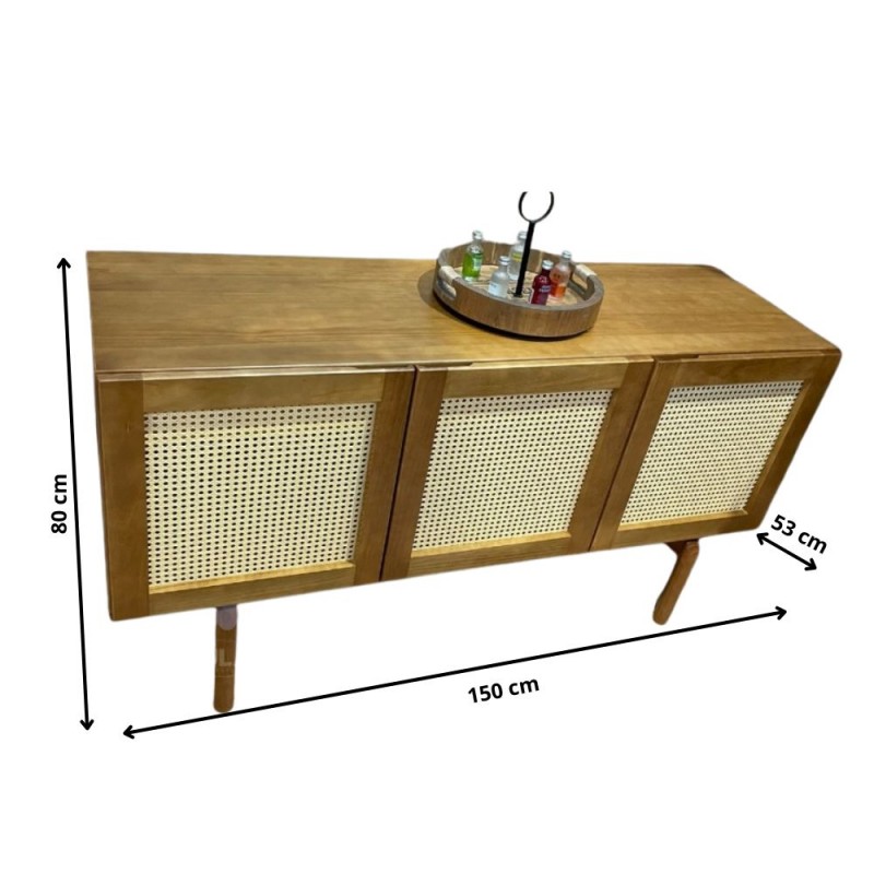 O Buffet de madeira Vancouver, super moderno se encaixa em todos os lugares facilitando ainda mais seus dias, contendo 3 portas com detalhes em palhinha natural, gavetas internas e 2 prateleiras, proporcionando praticidade para melhor organiza-lo. Confeccionado com madeira de reflorestamento taeda com acabamento em verniz.