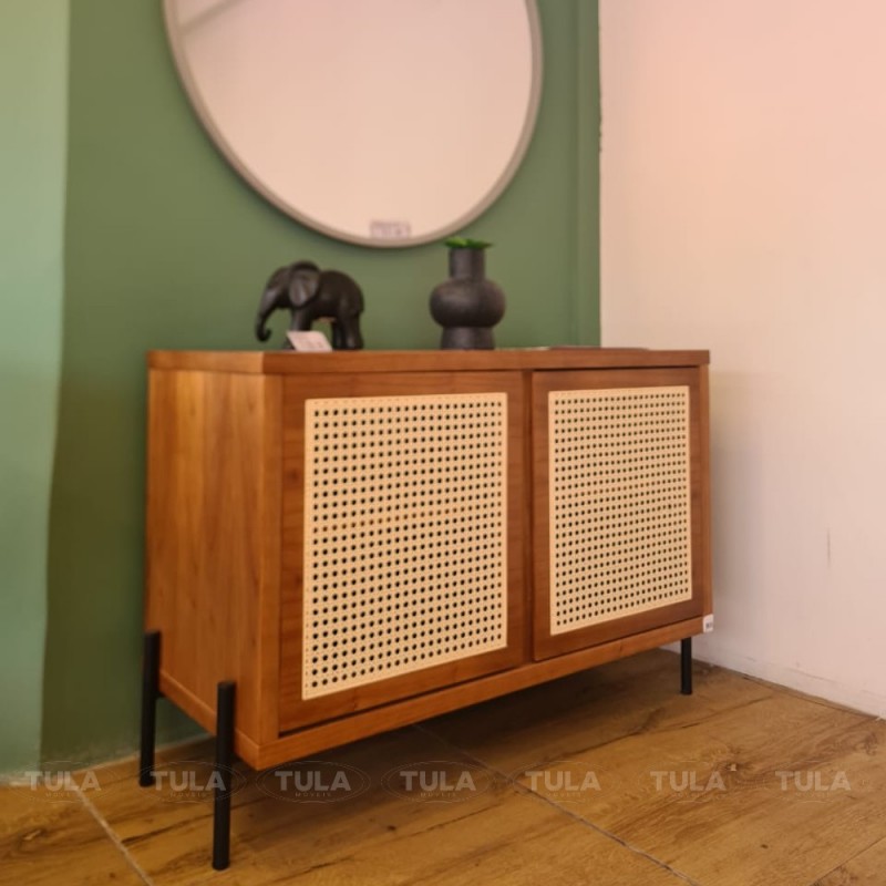 - Portas: 2 Portas com Acabamento de Rattan com Palhinha Natural.