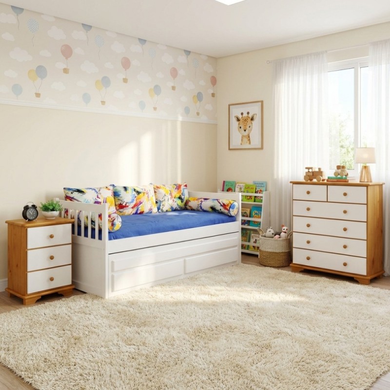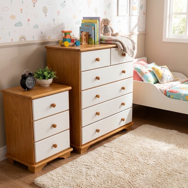 Essa Cômoda Amsterdam laqueada de branco foi pensada nos quartinhos de bebês e quartos infantis. Ela é toda em madeira eucalipto, de alta qualidade, laqueada de branco com mel, trazendo resistência e durabilidade ao móvel. Possui 4 gavetas amplas e 2 pequenas para acomodar roupas com organização, além de um tampo amplo para você colocar objetos decorativos e dar um upgrade no seu quarto.