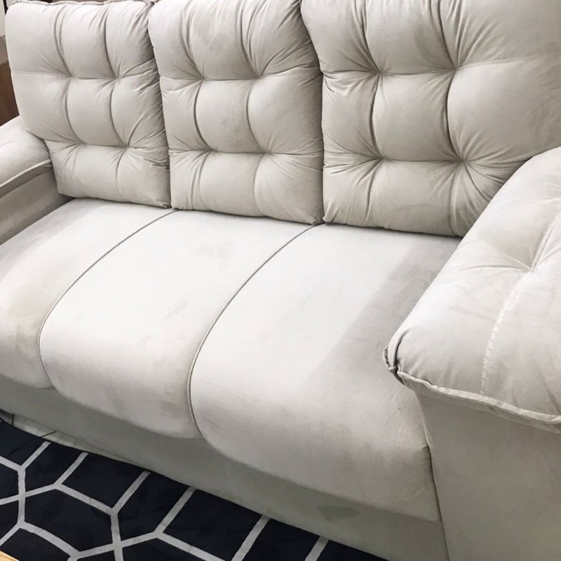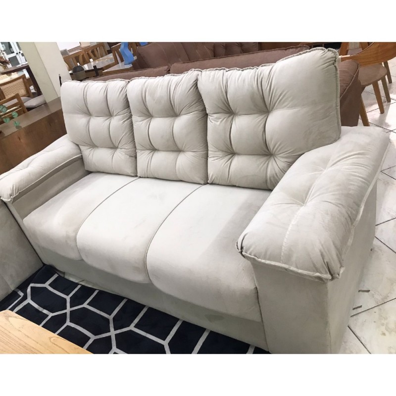 Os assentos são contínuos, quanto a espuma ela é de boa qualidade sendo o assento densidade 28. O Sofá possui revestimento em Veludo.