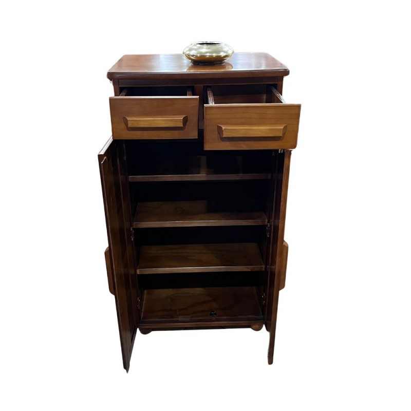 A Sapateira de Madeira Mônaco traz praticidade, organização e beleza ao seu lar. Possui 2 portas de abrir com 3 prateleiras bem reforçadas para que você nunca tenha problemas de desabamento com os sapatos e oferece além de funcionalidade para seu dia a dia, sofisticação para o seu quarto. Seu design com portas ripadas é feita com madeira eucalipto, muito resistente, trazendo maior durabilidade e dando um toque diferenciado ao seu quarto.