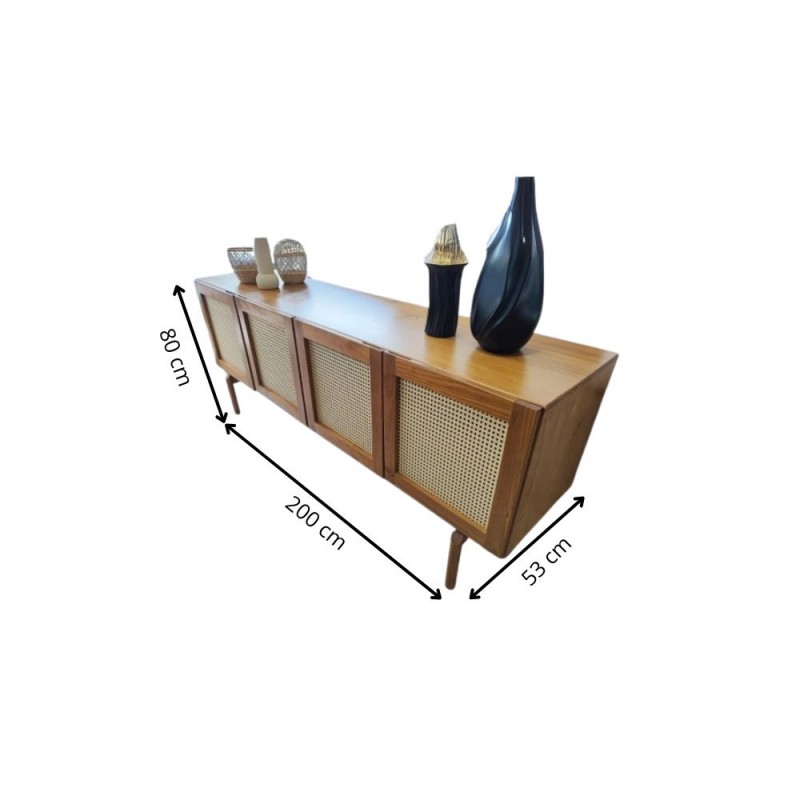 O Buffet de madeira Vancouver, super moderno se encaixa em todos os lugares facilitando ainda mais seus dias, contendo 4 portas com detalhes em palhinha natural e 2 prateleiras, proporcionando praticidade para melhor organiza-lo. Confeccionado com madeira de reflorestamento taeda com acabamento em verniz.