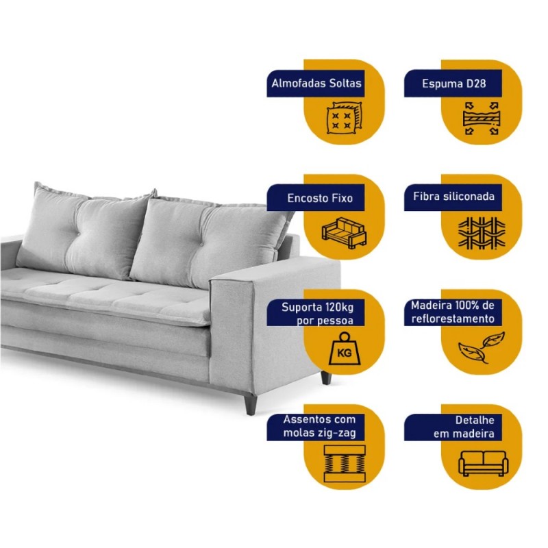 - Assento preso com Molas Zig Zag, Pillow 8cm de espuma soft D28 contínua para maior conforto e durabilidade.
