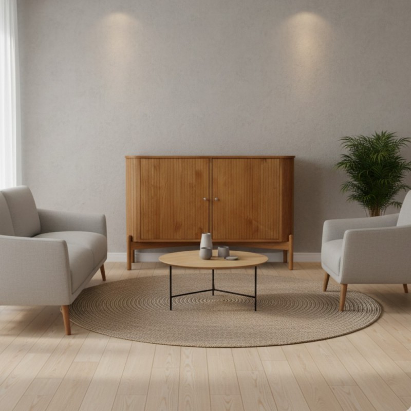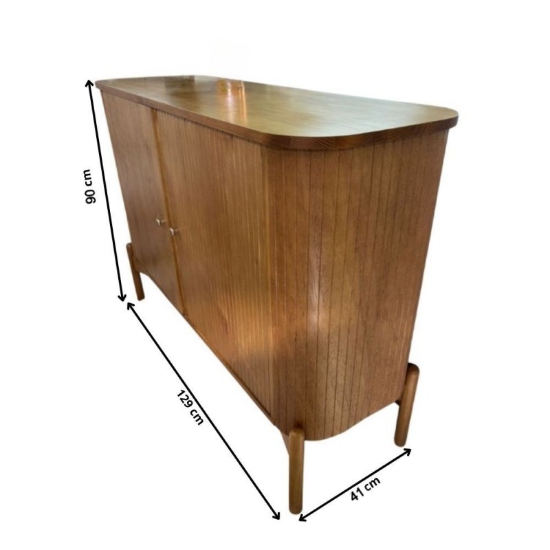 Com acabamento amadeirado e design ripado nas portas, este balcão traz charme e sofisticação para a decoração. Sua estrutura robusta em madeira garante durabilidade, enquanto os puxadores discretos e a base elevada com pés torneados dão leveza ao móvel. Versátil, pode ser usado na sala de estar, sala de jantar ou até no home, servindo tanto para organização quanto como apoio decorativo.