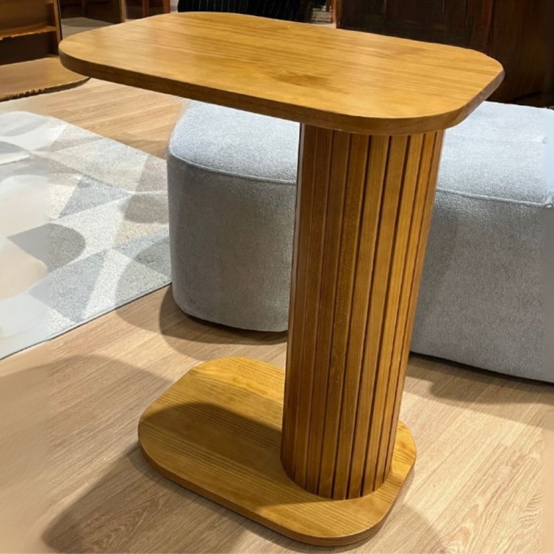 Com design moderno e funcional, esta mesa lateral é perfeita para compor salas de estar ou ambientes decorativos. Seu tampo em formato retangular com cantos arredondados oferece praticidade, enquanto a base ripada garante charme e sofisticação. Produzida em madeira, une resistência e estilo, sendo ideal para apoiar objetos decorativos, luminárias ou até servir como apoio no dia a dia.