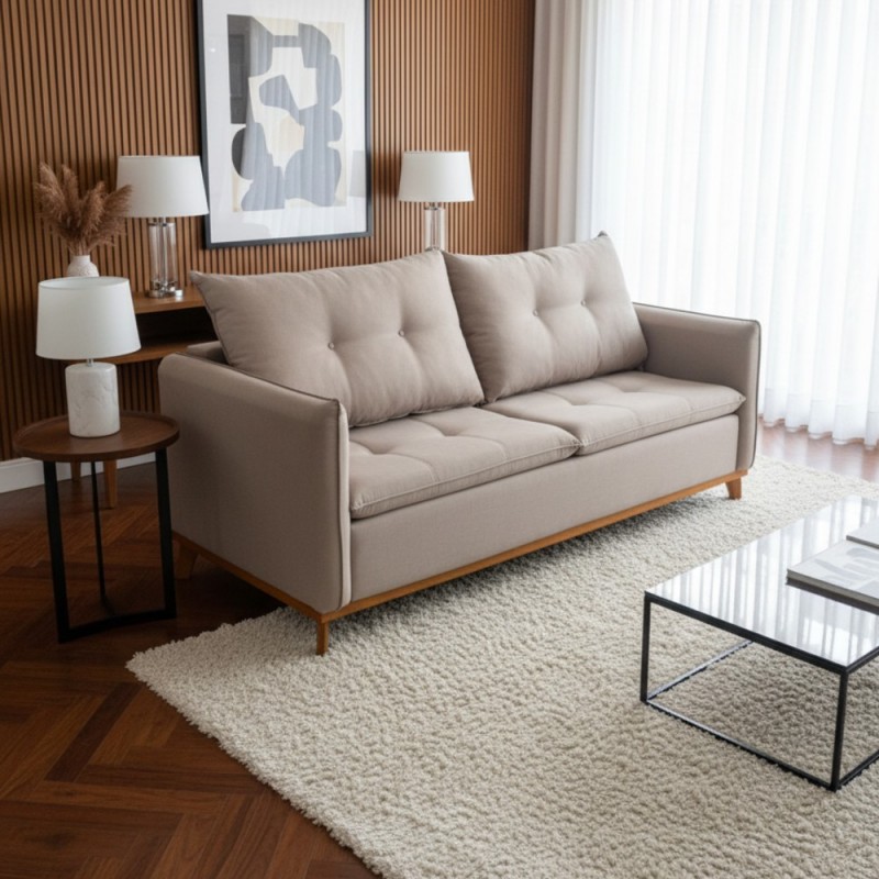 Encosto: Almofada com fibra 100% siliconada garantindo firmeza e alinhamento do encosto do sofá.