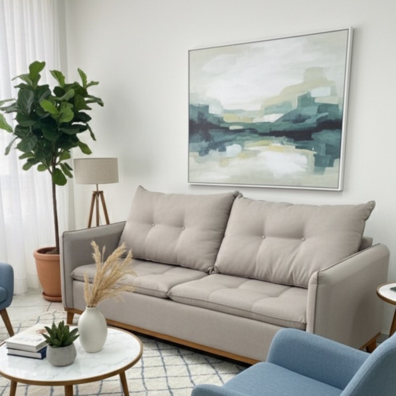 Chegou o sofá que é tendência. O Sofá Living Jade vai protagonizar o seu ambiente. Luxuoso, lindo, e um design incrível pra ninguém botar defeito. Destaque para o debrum bege que torna esta peça tão especial e exclusiva. Chame os amigos e a família pra um filminho que o Sofá será sucesso absoluto. Produzido em Madeira e o seu revestimento em Linho com debrum o torna alto padrão.