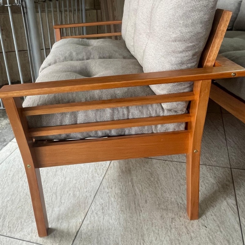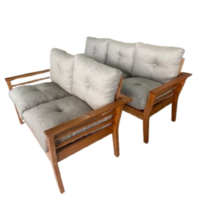 Novo -40% Conjunto Sofá 2 e 3 Lugares Madeira Realeza Almofadas Soltas Cinza Mel Ver maior