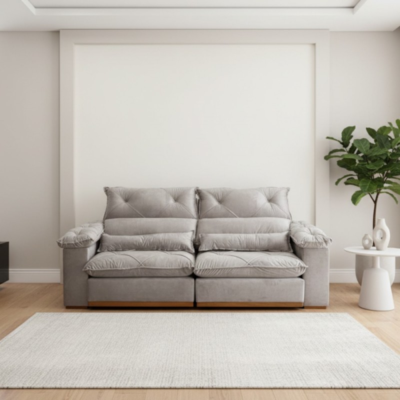 Sofá 4 Lugares Retrátil e Reclinável 2,50m Molas Ensacadas Lorenzo Veludo Prata