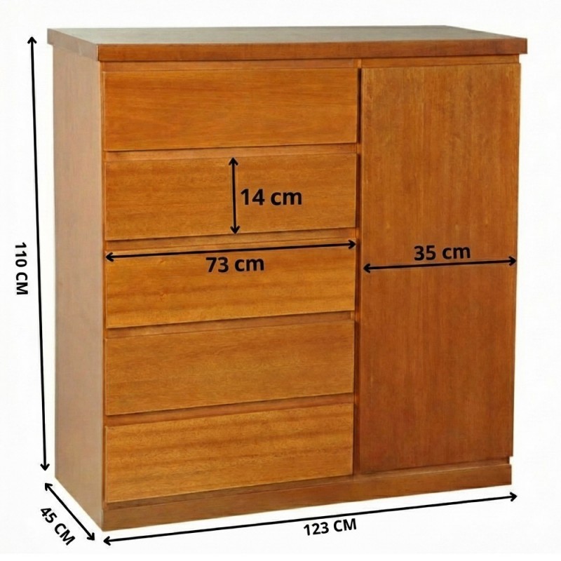 A Cômoda Sapateira Cannes possui 5 gavetas grandes que correm na madeira (sem corrediças) mais 1 porta com puxadores de cava. É excelente para ajudar na organização de seu quarto. Seu design é clássico e combina com qualquer armário de madeira que fabricamos. Super resistente com estrutura toda em madeira cedro de alta qualidade com acabamento em verniz pu, deixando o móvel sedoso e livre de arranhões. Sendo assim, a cômoda traz maior durabilidade dando um toque diferenciado ao seu ambiente.