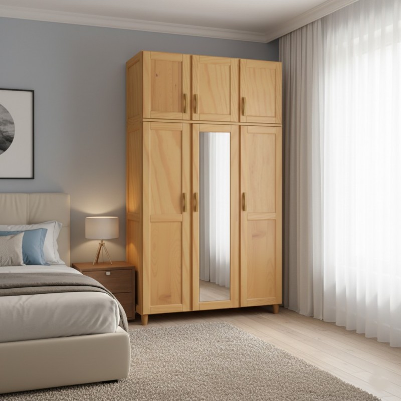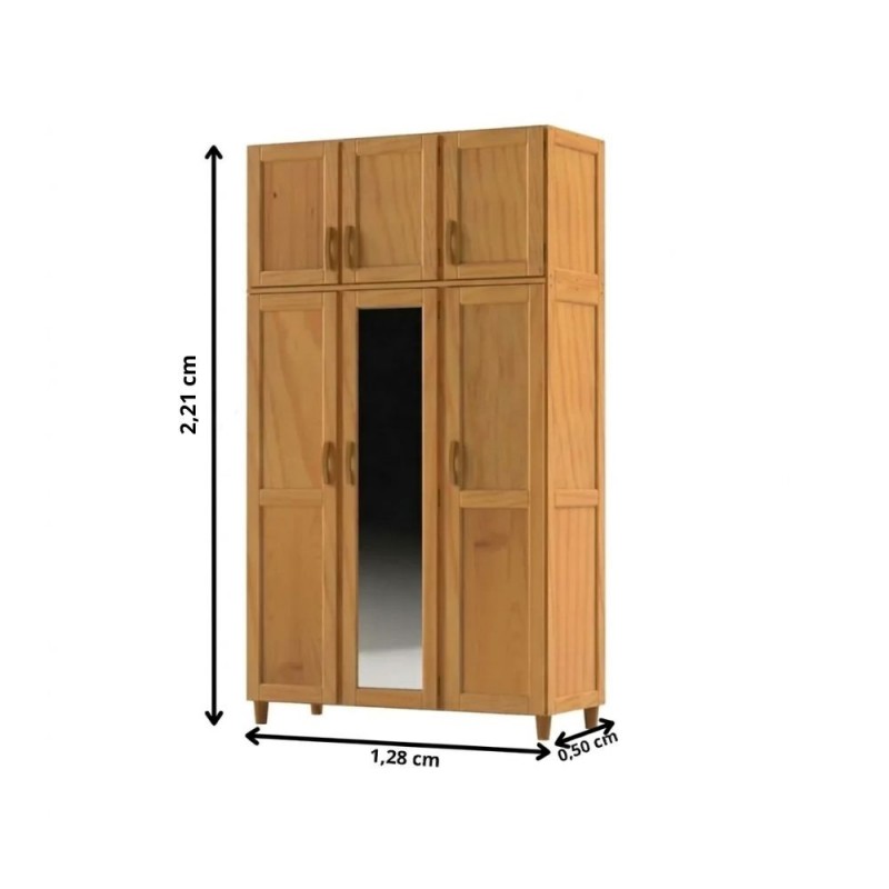 O Armário Firenze é um dos mais econômicos com melhor custo-benefício e é ideal para quartos pequenos e tetos baixos, já que a sua altura é 2,21m. Possui3 pts de abrir e mais 3 portas do Maleiro, que proporciona melhor visão dos itens, 04 prateleiras, 1 cabideiro, e 3 gavetas para melhor divisão e espelho externo trazendo amplitude ao seu ambiente. Essa peça além de prática, é muito resistente.