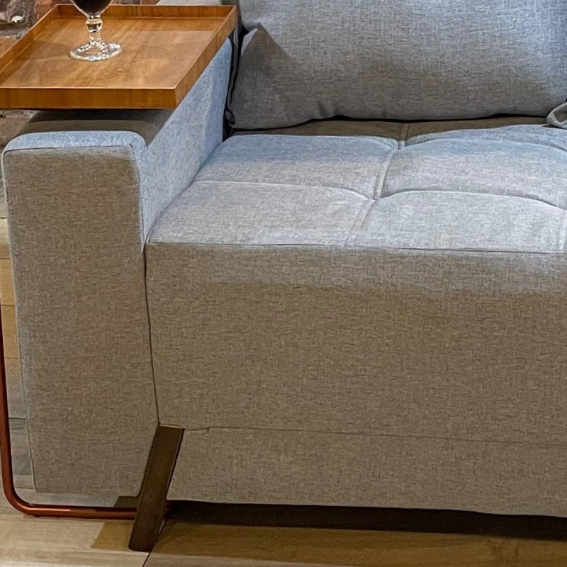 Os assentos são contínuos, quanto a espuma ela é de boa qualidade sendo o assento densidade 28. O Sofá possui revestimento em Linho.