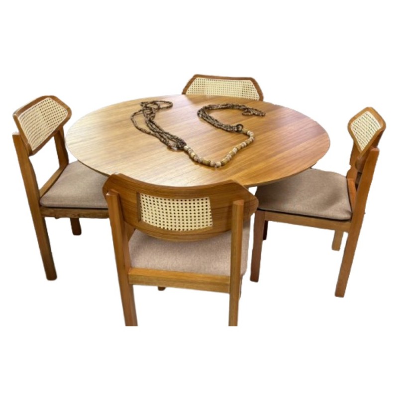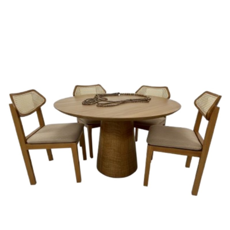 -40% Conjunto de Mesa Redonda Tampo de Madeira 1,20m Cone com 4 Cadeiras Palhinha Instambul Mel Ver maior