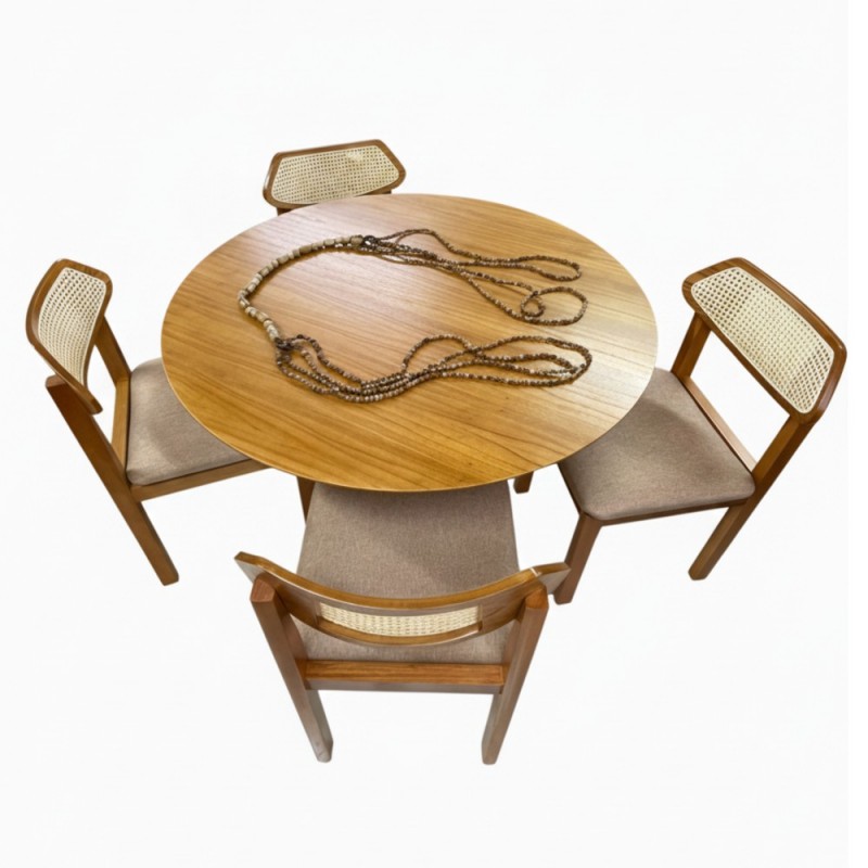 Super resistente com estrutura em madeira Eucalipto de alta qualidade, é uma madeira macia de superfície lisa e não racha. Possui acabamento em verniz fosco, deixando o móvel sedoso e livre de arranhões. Sendo assim, o Conjunto de Mesa traz maior durabilidade dando um toque diferenciado ao seu ambiente.!