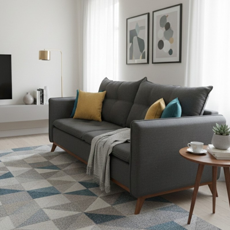 Encosto: Almofada com fibra 100% siliconada garantindo firmeza e alinhamento do encosto do sofá.