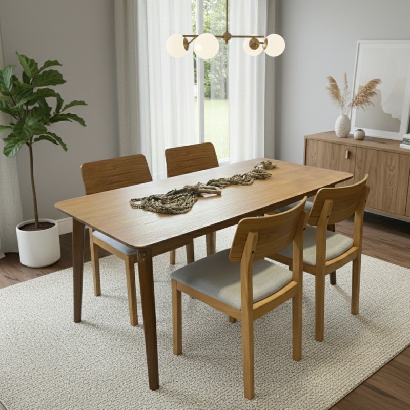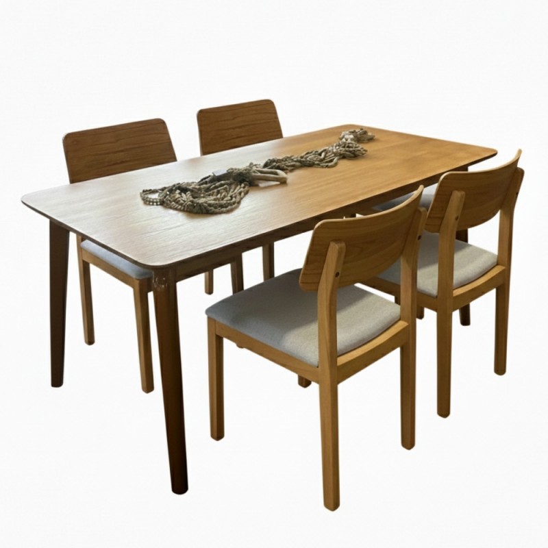 Super resistente com sua base em estrutura em madeira taeda de alta qualidade. Possui 4 pés torneados. Suas Cadeiras possuem a estrutura em madeira taeda e tecido em Linho Bege trazendo mais luxo e sofisticação. Possui acabamento em verniz fosco, deixando o móvel sedoso e livre de arranhões. Sendo assim, o Conjunto de Mesa traz maior durabilidade dando um toque diferenciado ao seu ambiente.