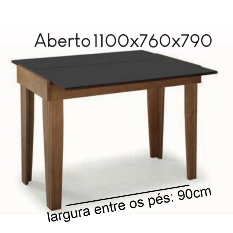 | Dimensões da Mesa (LarguraxProfundidadexAltura) | Fechada: 1,10x0,45x0,79m Aberta: 1,10x0,76x0,79m |