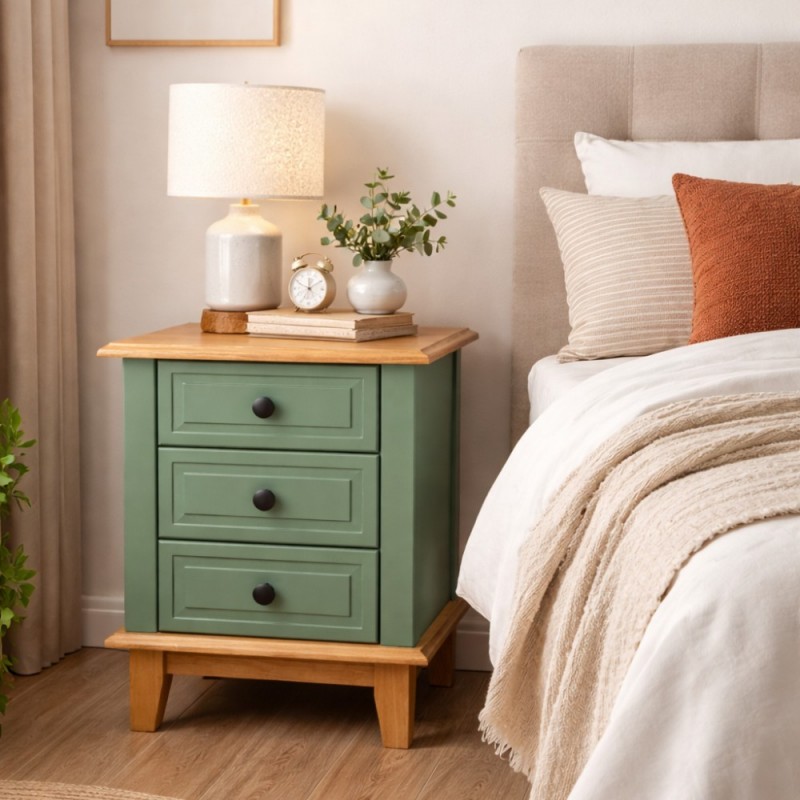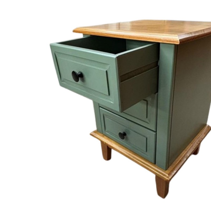 Possui 3 gavetas em Laca que correm na madeira com puxadores metálicos e é excelente para ajudar na organização de seu quarto. Seu design é moderno e combina com qualquer móvel que fabricamos. Super resistente com estrutura em MDF e o acabamento em Laca Branca e Gavetas em Laca Branca, resistente ao desgaste natural, preserva a cor e hoje é considerado uma das melhores pinturas para móvel de madeira. Seu tampo e seus pés são de madeira taeda, super forte e resistente, dando mais durabilidade ao móvel.