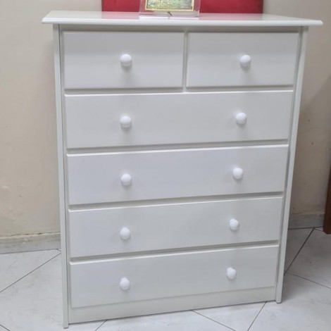 A Cômoda Lucy na cor branca é bem procurada pelas mamães por ser uma cômoda linda e por possuir um ótimo custo-benefício. Ela tem um visual mais clean agregando beleza e requinte ao ambiente. possui 5 gavetas grandes e 2 gavetas pequenas com corrediças metálicas com puxadores de madeira, e é excelente para ajudar na organização de seu quarto. Seu design é clássico e é ideal para quartos de bebês e crianças por ter a tonalidade na cor branca. Feita em madeira eucalipto laqueada de branco, a cômoda traz maior durabilidade dando um toque diferenciado ao seu ambiente.