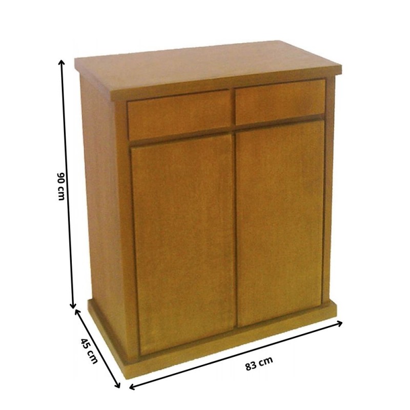 A Arca Ádria possui 2 portas de abrir e 2 gavetas que correm na madeira. Em seu interior possui uma divisão com prateleira de madeira para uma melhor organização dos seus pertences. No escritório é ideal para guardar livros, documentos e material de trabalho, Já na sala, pode ser utilizado para louças e aparelhos de jantar e objetos decorativos no tampo, que ficam um charme.