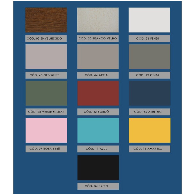 - Cor: Laca Verde Militar/Imbuia ou outras cores.
