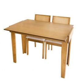 O Conjunto Top é perfeito para salas pequenas, otimizando o seu espaço. Fechada, ao encostar na parede, ela vira um aparador. Aberta, poderá fazer as suas refeições diárias com bastante tranquilidade e segurança, pois é produzida em madeira dando mais durabilidade e resistência ao produto. Invista em uma mesa de jantar cheio de personalidade para a sua casa!