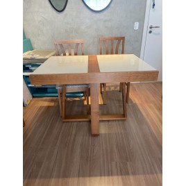 A Mesa Itália é elástica e pode ser usada tanto fechada (1,10m) quanto aberta (1,70m) para receber os seus convidados nas épocas festivas. O Melhor dessa mesa é que ela possui esteiras rolantes e é você que regula o quanto deseja abrir. Possui base estrela e acomoda 4 pessoas. Suas Cadeiras possuem design diferente para trazer mais modernidade ao seu ambiente.