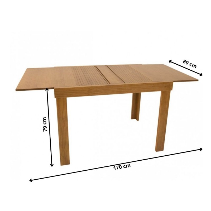 | Dimensões da Mesa (LarguraxProfundidadexAltura) | Fechada: 1,10x0,80x0,79m Aberta:1,70x0,80x0,79m |